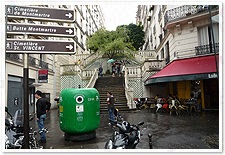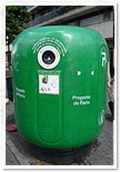 以前フジテレビ・パリ支局員だったことのある阿部知代アナに聞いてみたところ、パリではビン類は日本の郵便ポストの様にこの緑色の回収BOXに自分で入れに行くのだそうです。処変われば・・・ですね。
