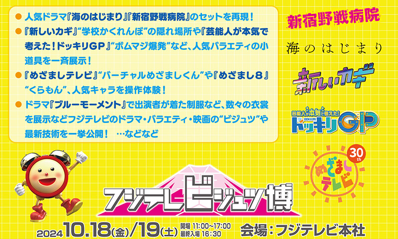 さらにフジテレビのドラマ・バラエティ・映画で使用された小道具・持道具や造形物を一挙展示します。