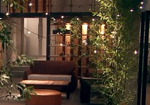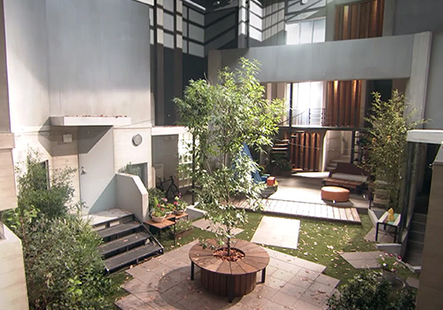 たとえば、4世帯の玄関に通じる中庭パティオ。