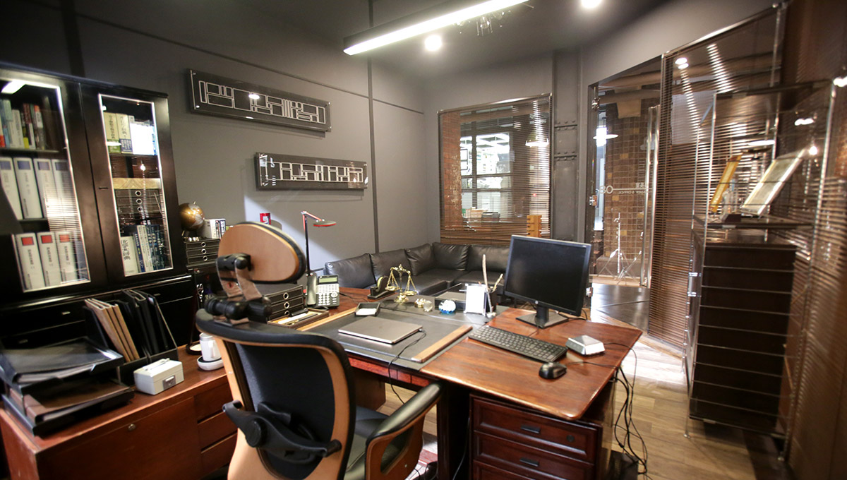 光の色味です。事務室や検討室にはアンバー(オレンジ)系のライトを使って、照明の数もダウンライト、蛍光灯、吊りブラケット、壁付けブラケットとたくさん入れています。暖色系の光は和やかな空気感や人物の味わいを醸し出すんです。逆に、鑑定をする部屋などにはブルー系の光を使っています。そちら側の並びの部屋には“続き窓”を付けて、夜のシーンでは真っ暗、明け方は光を差し込ませて時間の経過を表します。光とセットのコラボで織りなす世界観を是非見てください。