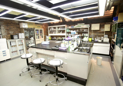本物の最新分析機器がひしめき、緊迫感を演出しています。