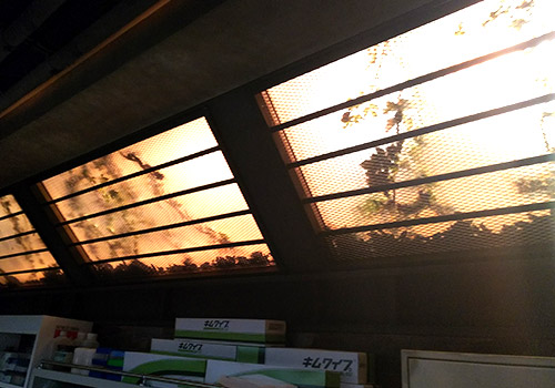 事務スペースから見上げる“ローアングルショット”が生きます。