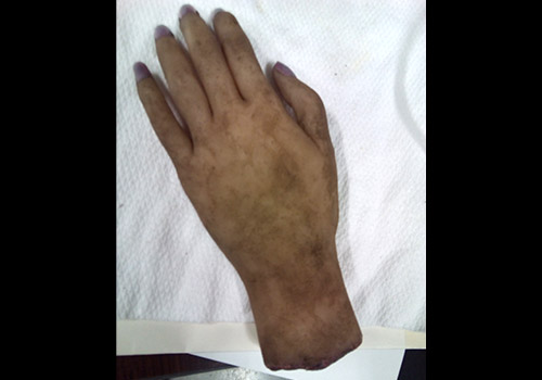 動脈から噴き出した鮮血の色、少し時間がたって凝固した
