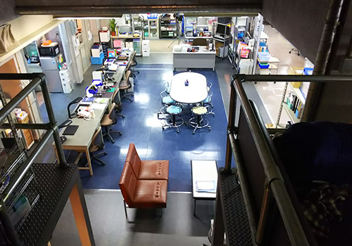 ー技師控室デスクの横一列の配置が印象的ですが、デザインの意図は?