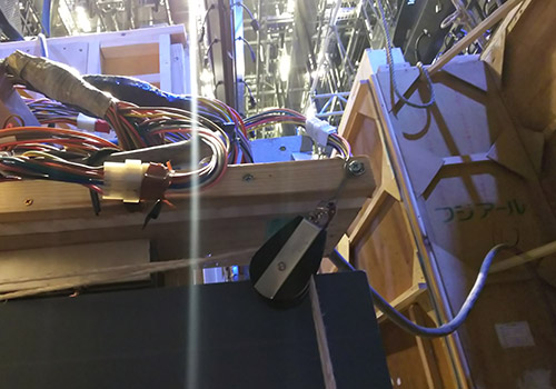 セット裏には電気関係のケーブルがひしめき合っております。