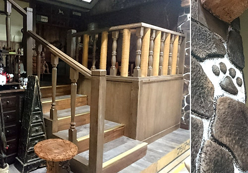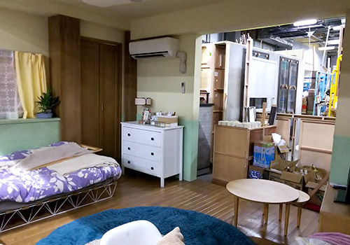 スタジオに隣接する大道具倉庫に