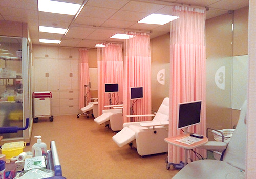 腫瘍内科にある特徴として、化学療法室という治療部屋があります。いくつかの病院をロケハンした際に、実際の化学療法室の内部を見せていただき、医療関係者の話を聴く機会がありました。それもデザインをする上で参考にしています。