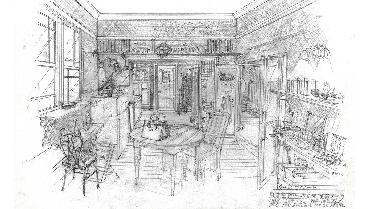 主人公の桜子は、貧しい家庭で育ったトラウマから「お金が最も大事」を信条とする人物で、お金持ちの結婚相手と出会うために、全てのお金を洋服や持ち物に注ぎ、住んでいるのはボロボロの安アパートという設定でした。でも、普通のボロボロのアパートだと、「“月9”の夢のあるドラマに相応しくないんじゃないか」というので、桜子が住んでいるのは、「古いアパートを古着屋に改装した物件」というアイディアでデザインしました。