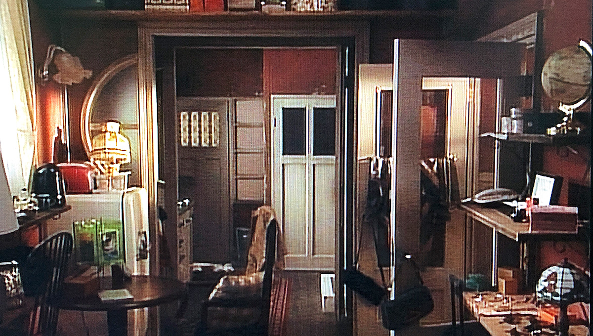 先日の再放送でも出てきましたが、桜子の貧しい少女時代の回想シーンですね。コメディーですから大袈裟に描いているのですが、こういうロケ先を見つける方が難しいので、外観はオープンセットで作りました。内部のシーンは、スタジオにセットを組んで撮影しています。