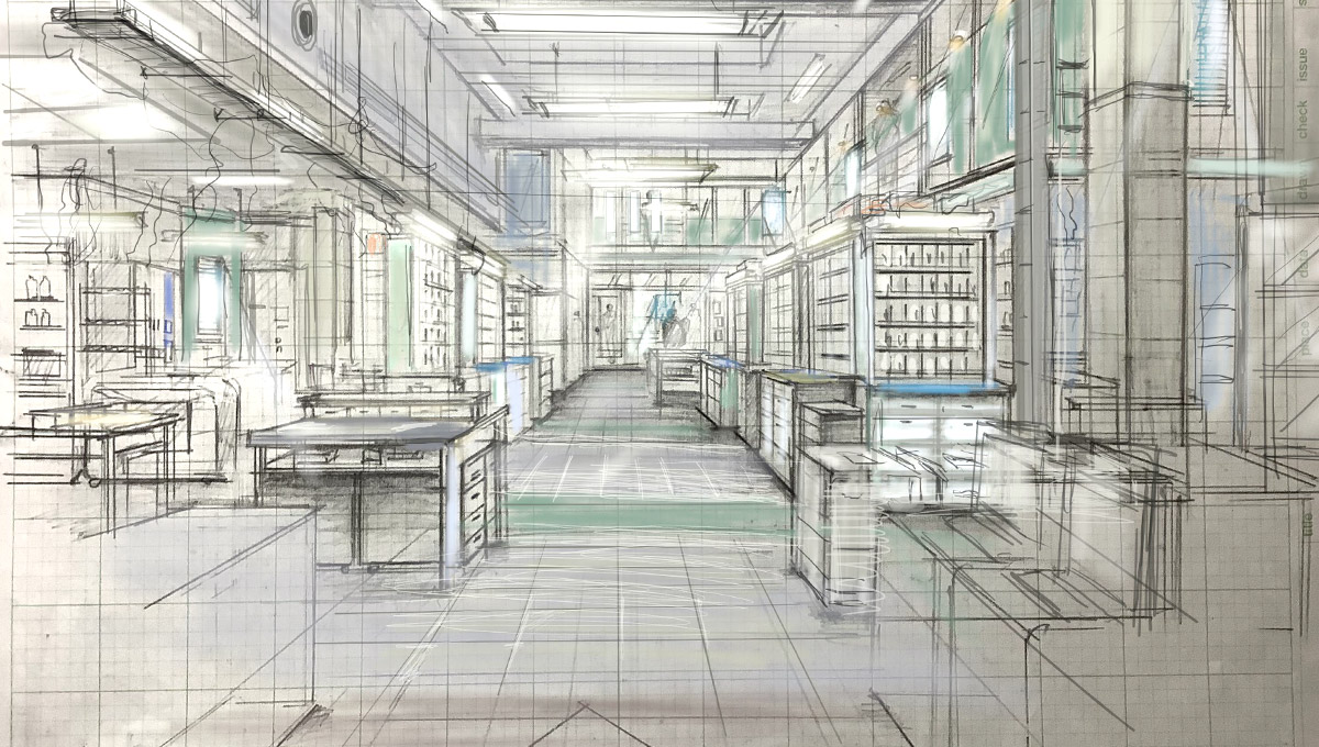 装飾スタッフは実際の病院薬剤部をつぶさにロケハン。