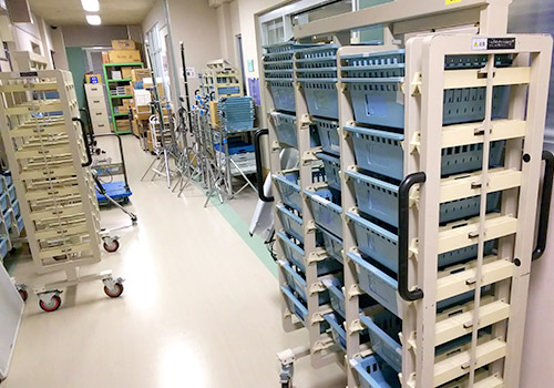 こちらは、入院患者一人一人に合わせた薬トレーを運ぶカート。