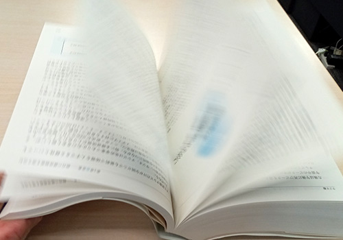 分厚い本を横から見て、ページがパラパラめくれてるイメージ。