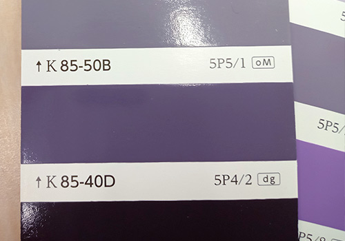 というわけでテーマカラーの「バイオレット」を、セットの壁などにもさりげなく配置。うまく使わないといやらしい色になるので、色のくすみ具合や使う面積を工夫しています。