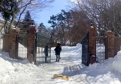 豪華な別荘ですから門からのアプローチもそれなりに。