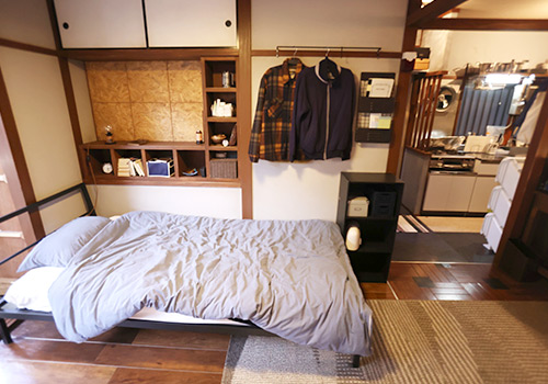 きちんと整理されているシンプルな部屋になっていて、和骨を使って組み上げました。といっても若者が住む部屋なので、壁紙は貼っていますし、畳ではなく板間というかフローリングです。
