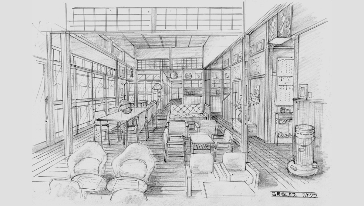 当時は「古民家カフェ」や「スローライフ」のイメージから、江ノ電沿線やら鎌倉が憧れられていました。実際にいい雰囲気のカフェがあって、監督がそこでオールロケでやりたい、というのがスタートだったので、全部セットでやる事に決まった時は、実在のそのカフェの「古民家を新しい感覚のポップでカラフルな使い方をする」というコンセプトをベースにして、ナガクラの店長「慎平」の作った空間になるようにデザインしています。