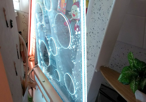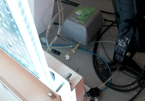 水槽の底に設置したエアーポンプも、何故か電飾さんが担当。