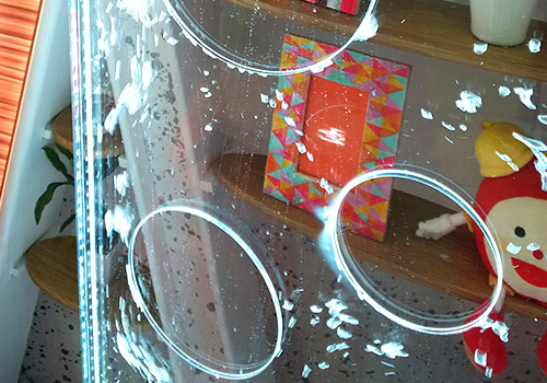 光を乱反射するこだわりのアクリルボードが、ちりばめられています。実はコレ、既製品にはありません。
