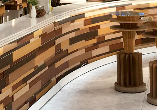 「木のタイル」に囲まれたスペースでくつろぎながら