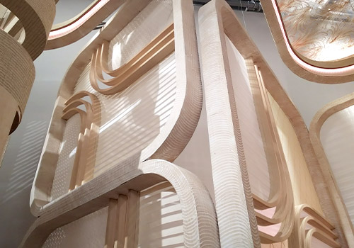 支持する角材に「曲げベニヤ」を打ち付けて一つ一つ作ります。