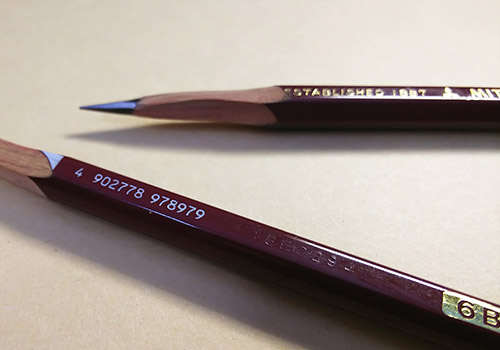 自ら削らないとしっくりこないという愛用の鉛筆は、6Bの硬さ。