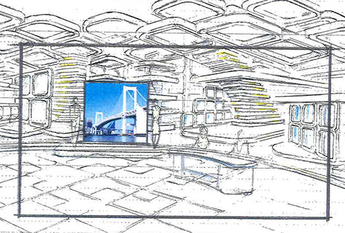 これは、「建ち物」と呼ばれる背景壁の発注図面。