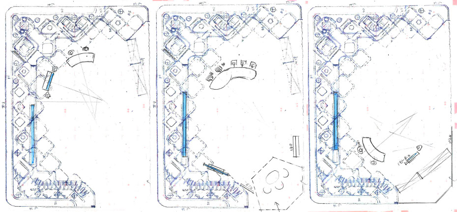 その条件下で3つのセットをデザインするにあたってまず考えたことは、「スペースをいかに有効活用するか」。