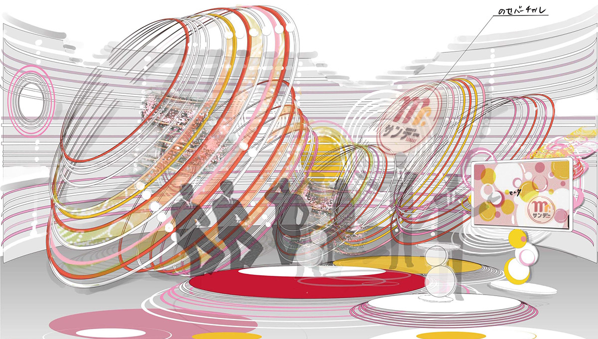番組が10年目に入って、プロデューサーから「斬新で、かつ情報番組として芯の通ったセットにしたい」との要望がありました。それを受けて、ディレクターが「“波紋”をモチーフにしたらどうか」と。各地の波紋を追跡して伝える、宮根キャスターが波紋を起こす……とさまざまな意味合いの“波紋”です。