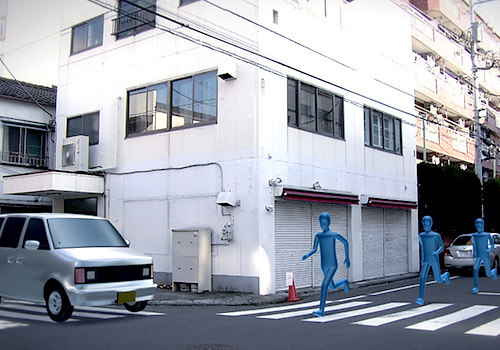 イメージCGの制作では、たとえば昼間の現場画像を夜の情景に