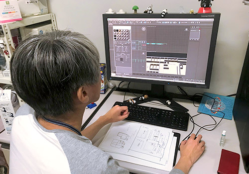 次に、モデリングした立体に様々な質感を与えたり、コンピューター上でライティングを加えたりしながら仕上げていきます。