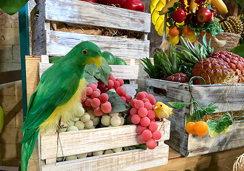 南国の「フルーツ屋さん」は、鳥が群がっても気にしない様子。