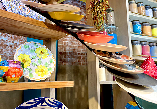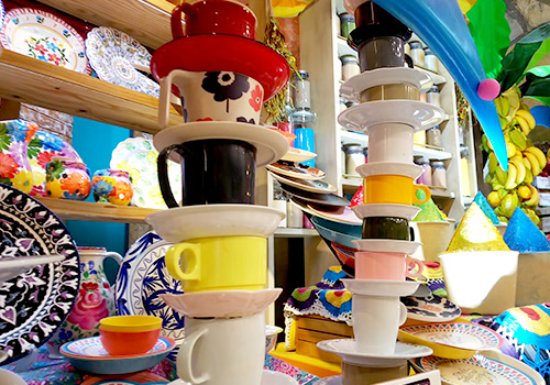 こちらのヘンテコ「食器屋さん」でも、コップや皿がありえない陳列に。