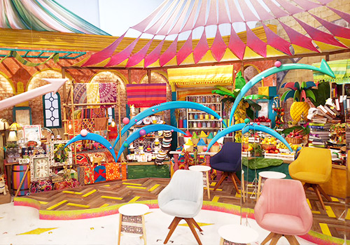 そんな番組コンセプトを“青空マーケット”空間で表現。何があるか行ってみないとわからない、どこかの街の不思議な市場です。