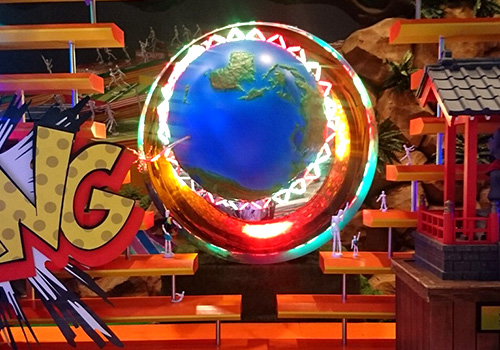 回っている地球のオブジェがそれ。
