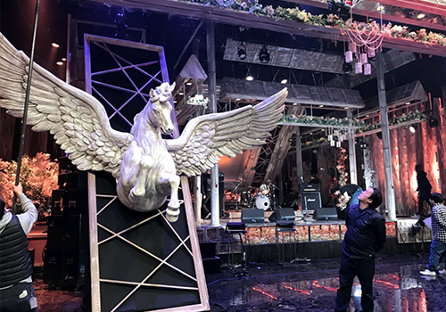 大きなセットを支えるためには、鉄骨が威力を発揮。