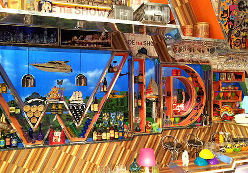 倉庫の一角には、ちゃんと酒瓶のコレクション棚もありました。