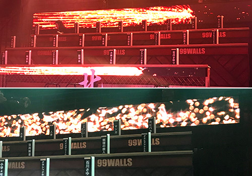 司会者の掛け声に合わせて、火花が散ったり、光が舞ったり、