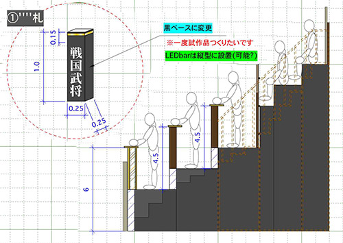 我々は「お題ボックス」と呼んでいるんですが、99人のブロッカー一人一人の前の立て札です。それぞれの得意ジャンルが書いてあるので、たとえセンターステージに上がれなくても、カメラに一瞬映り込むだけで、その人達にも自然に目が行きます。