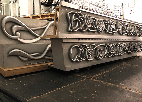 本物の石では重くて運べないため、セットはスチロールで造形する