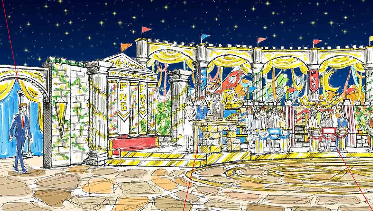 ドラマや映画の出演者がチームを組んで、ゲームで賞品を取り合う内容なので、モチーフとしては「コロシアムのような空間にしたい」と要望がありました。
