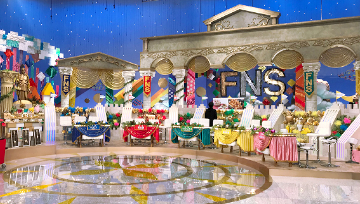 今回、番組の賞品が「各ドラマ出演者が食べたい差し入れ」というものだったので、背景の細かい飾り部分は「食」をテーマにして、食器などを飾りました。あと各チームカラーもあるので、セットの所々にその色を感じさせるようにもしています。