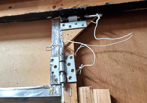 「ヌキ丁番(蝶番)」と呼ばれる金具を駆使した建てバラシです。
