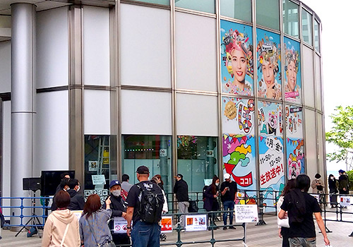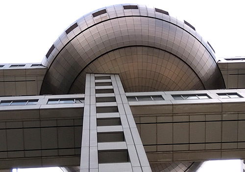 フジテレビ本社屋のシンボル「はちたま」の真下。