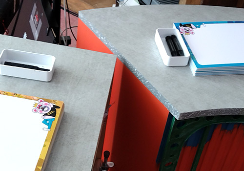 こちらは舞台裏。曜日ごとに変わるコーナー企画に合わせて、