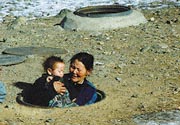 失業状態にあり、マンホールで暮らす親子
