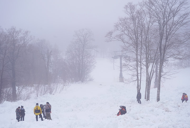 - そのシーンは福島で撮影をしたんですが、裏磐梯のホテルが全面協力してくださったんです。最初の撮影では、暖冬で雪がなかった場所に徹夜で雪をかき集めてくださったり、逆にその後、撮影隊が遭難してしまうくらいの猛吹雪になった時は、山頂の方に崖を作って撮影する当初の予定を変更し、急遽、安全に撮影ができそうな別の場所に崖を作ってくださりました。
