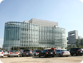 「湾岸スタジオ」のポイントは、ズバリ環境配慮型。たとえば、風の強い場所でありながら自然換気ができる、ガラス2層のダブルスキン構造の外装など、最新の建築技術と放送設備を取り入れた省資源・省エネのスタジオなのです。また、館内もトイレ・喫煙室・給湯室の照明はセンサー付き。自動で消灯します。階段やオフィスの照明も、センサーによってその時々に適した明るさに自動調節されます。
