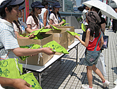 フジテレビの夏の恒例イベント『冒険王』が最も盛り上がるのは、8月8日(通称フジテレビの日)。東京都心で今夏初の猛暑日を記録したこの日、ご来場の皆様と “一緒にエコ考えよう”という思いを込めながら、フジテレビ環境プロジェクトの一環として先着5000名様にエコポーチをプレゼントしました。