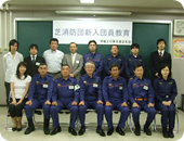 5月26日には、芝消防署所轄の第1分団から第8分団までのあわせて13名の新入団員教育が行われました。参加者は、同じように企業から派遣された会社員が中心でしたが、中には学生や神主さんも!!この日は、消防団員の心構えから始まり、敬礼や整列の仕方の規律訓練などが実施されました。