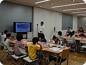 そして発表会。それぞれの作品をビデオカメラを通してモニターにパラパラしながら見せるというローテクな作品発表。それでも、子どもたちはみんなの作品を時には笑いながら、時には感心しつつ、時には真剣に見入っておりました。満足げで嬉しそうな子どもたちの顔を見ていると、ワークショップをやってよかったと思います。